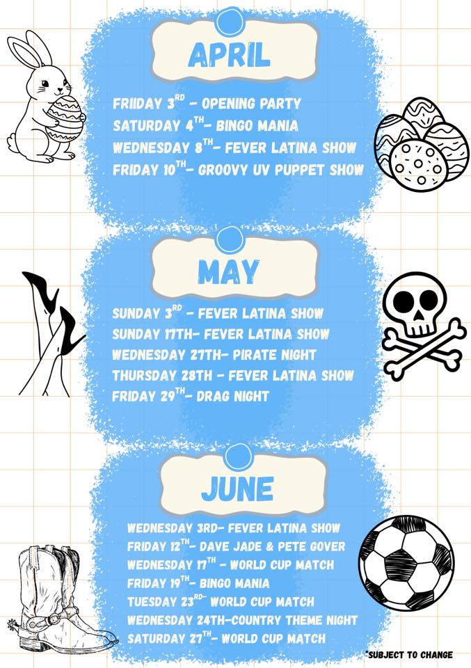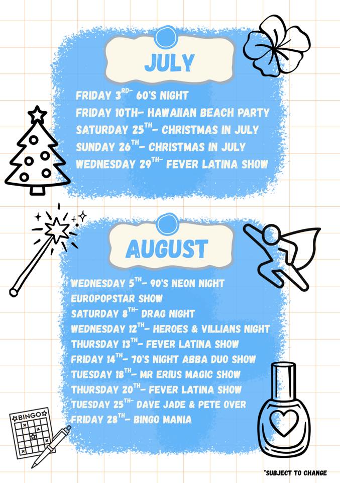 Expect to find all the information you need during your stay on our facebook page @PaddysBarAndClub or download August's Entertainment schedule: